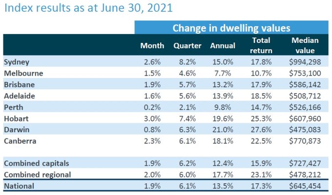 The gap between the capital cities and regional Australia has also narrowed with regional Australia recording 2% growth in June compared to 1.9% for the combined capital cities.