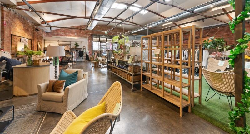 The building itself was originally a mechanics before being repurposed as a furniture and homewares store, along with being a café. However, the building has retained its red brick walls, concrete floors and skylights.
