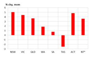 - Victoria and New South Wales recorded the strongest month-on-month growth