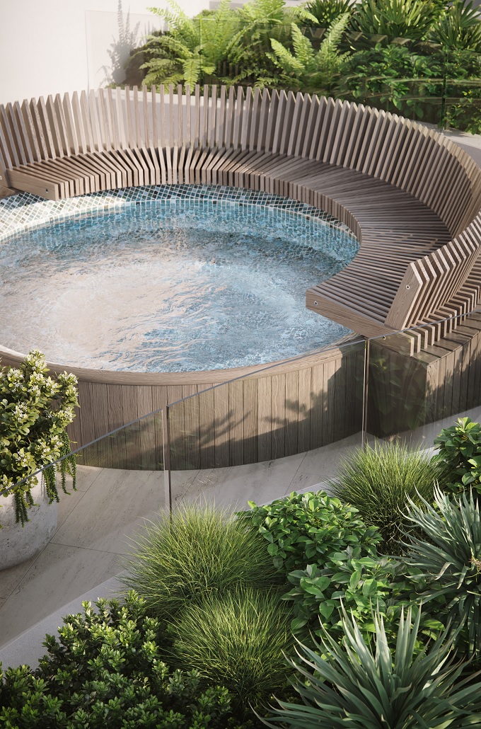 The three penthouses of the Ode, Double Bay development offer expansive rooftop terraces, including a BBQ, spa, and entertaining areas with expansive views of Sydney Harbour.