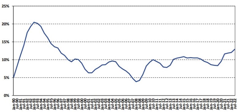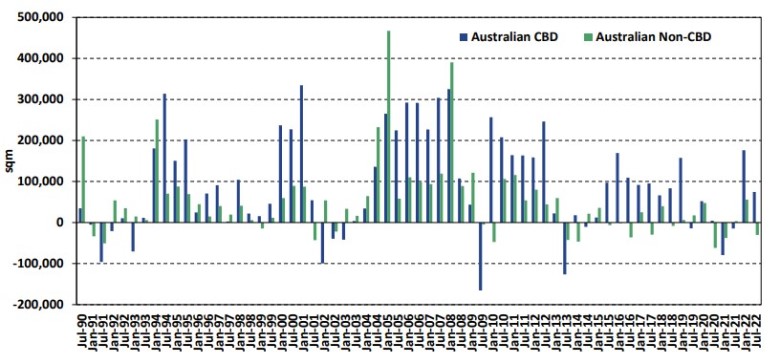 “While the Australian office vacancy increased by 0.8 per cent to 12.9 per cent over the six months to July 2022, it’s new office space that is driving this outcome, not businesses wanting less office space.”