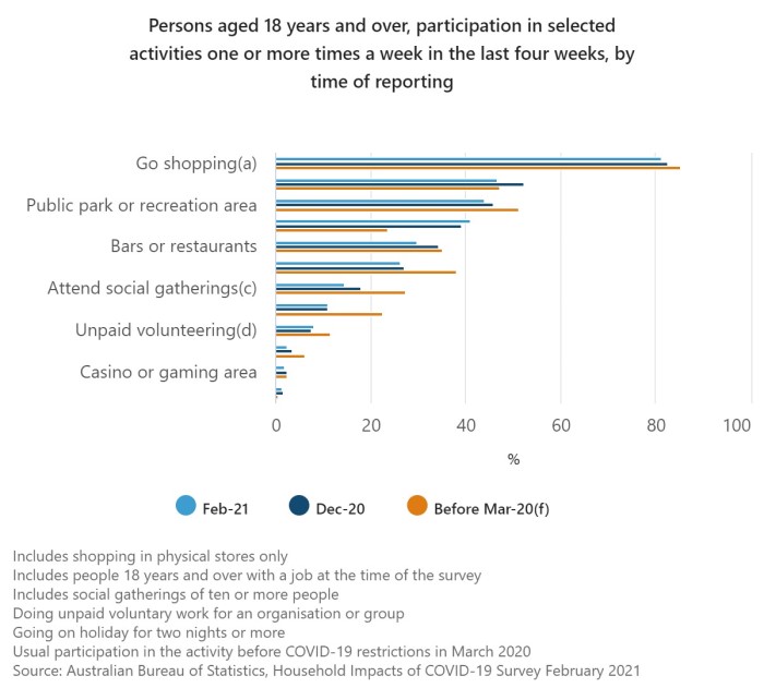 In its latest survey published today, the ABS said showed how households were affected by COVID-19. Shop till you drop was one trend with more than four out of five Aussies (81%) shopping during February 2020, up to 83% in December.