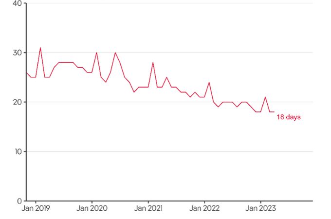 Median days on market in March 2023