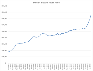 For example, have a look at this median house price chart for Brisbane based on ABS data:
