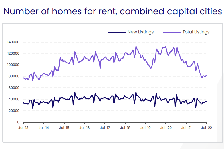 There simply isn’t enough rental stock available to cope with tenant demand. CoreLogic results to 14th August show that rental listings are down 21.1 per cent across the combined capital cities. This is a continuation of the trend that set in at the start of 2021.
