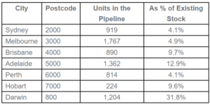The first short-term risk faced by potential investors is the fact that there has been a relatively high level of supply of rental apartments, both existing stock and in the pipeline. A salient example is Melbourne, which currently has almost 2,000 rental units in the pipeline according to RiskWise figures (see table below).